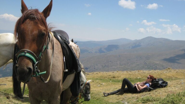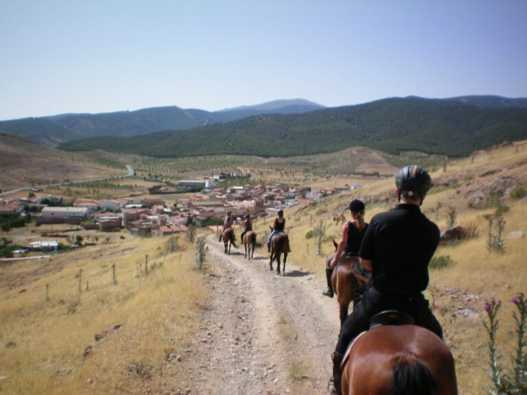 Las rutas a caballo por el Geoparque de Granada son una forma 煤nica de conectar con el entorno. Siguiendo antiguos caminos, ca帽adas y senderos, los jinetes se adentran en paisajes sorprendentes: c谩rcavas, badlands, ramblas y vegas f茅rtiles, siempre con Sierra Nevada o la Sierra de Baza como tel贸n de fondo.