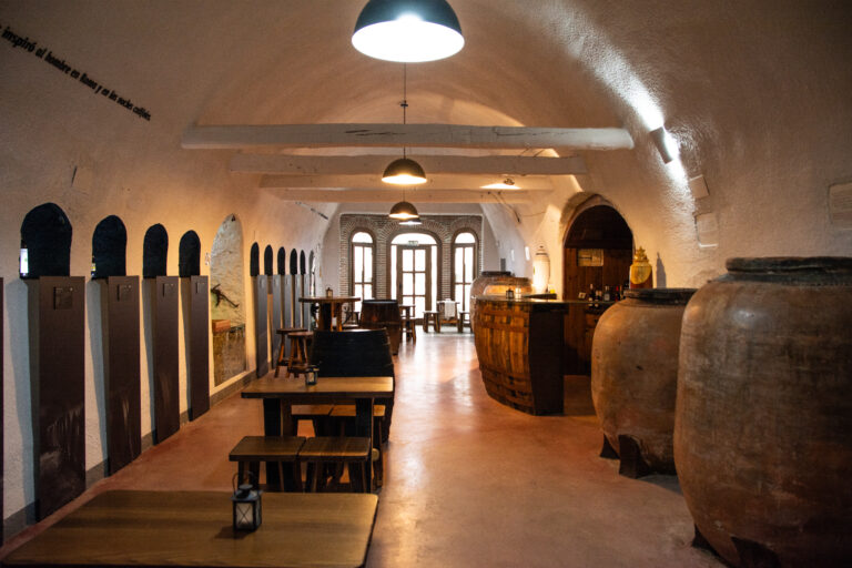 CUEVA 4. Bodega, el misterio de un buen vino: La cultura del vino reposa en este espacio reservado a descubrir una impecable selección de botellas que además te explicarán la situación actual del vino de la comarca de Guadix. Degusta su sabor y disfrútalo en compañía.